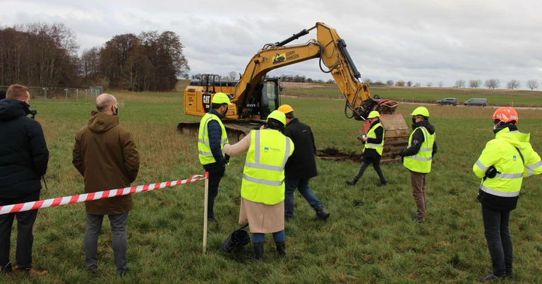 Gribskov Kommune holdt for nylig det traditionelle spadestiks-arrangement fra Helsinges nye bydel Troldebakkerne. Spadestikket blev i dagens anledning taget af en gravemaskine fra entreprenør Gorm Hansen, hvor et af områdets regnvandsbassiner skal være.